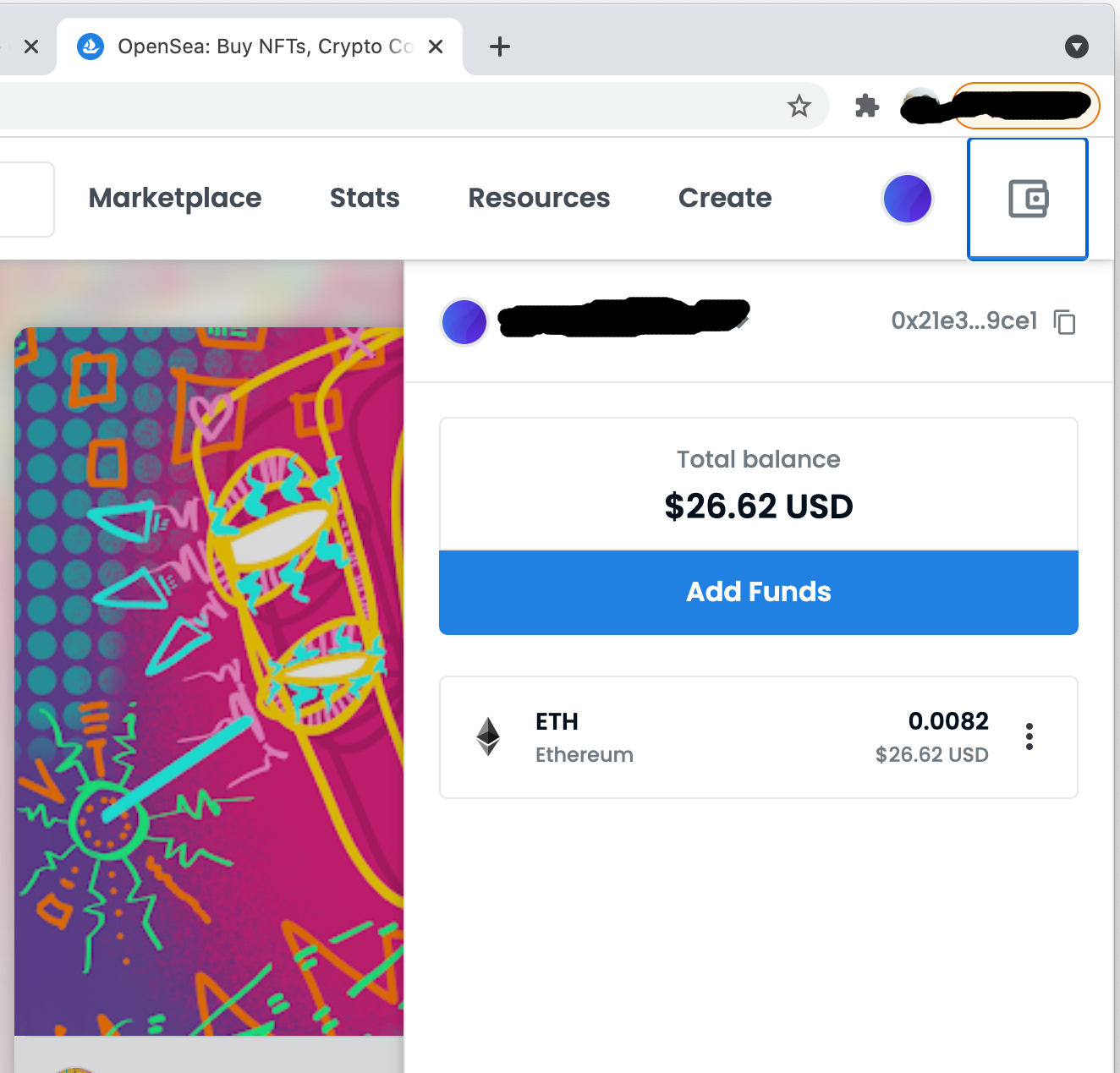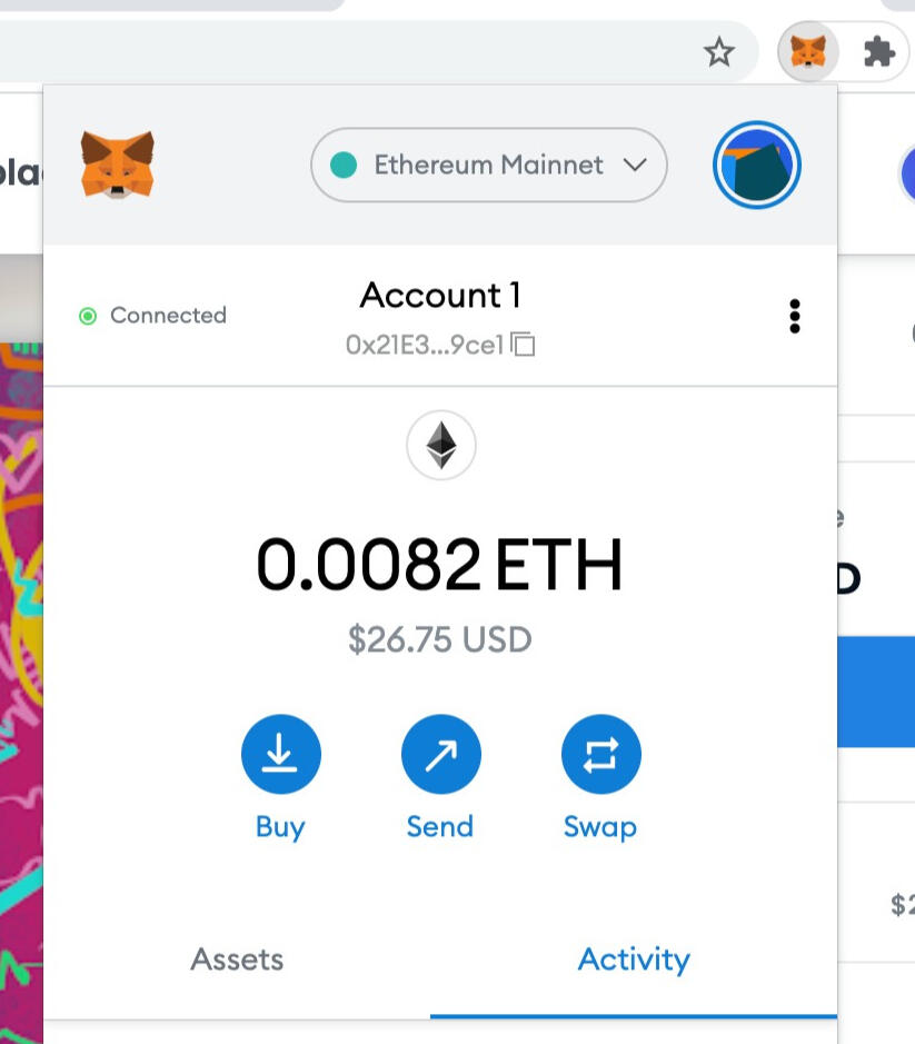 Step 5: At some point you will need to fund your wallet to transfer NFTs. If you already have crypto holdings on Coinbase or Binance, then you can easily transfer ETH to your wallet now that you have the address (at the top of the MetaMask extension).If you have never bought cryptocurrency before, you are able to fund your wallet by simple clicking the "buy" button. You will be connected to a third-party to buy with a credit or debit card. Note: You will see an option to fund in Opensea using Moonpay, we suggest you stay within MetaMask & use Wyre.